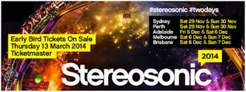 Stereosonic is Australia’s premier electronic music festival that showcases the most diverse artist lineup in Australasia. The 2014 Lineup will be announced in July.